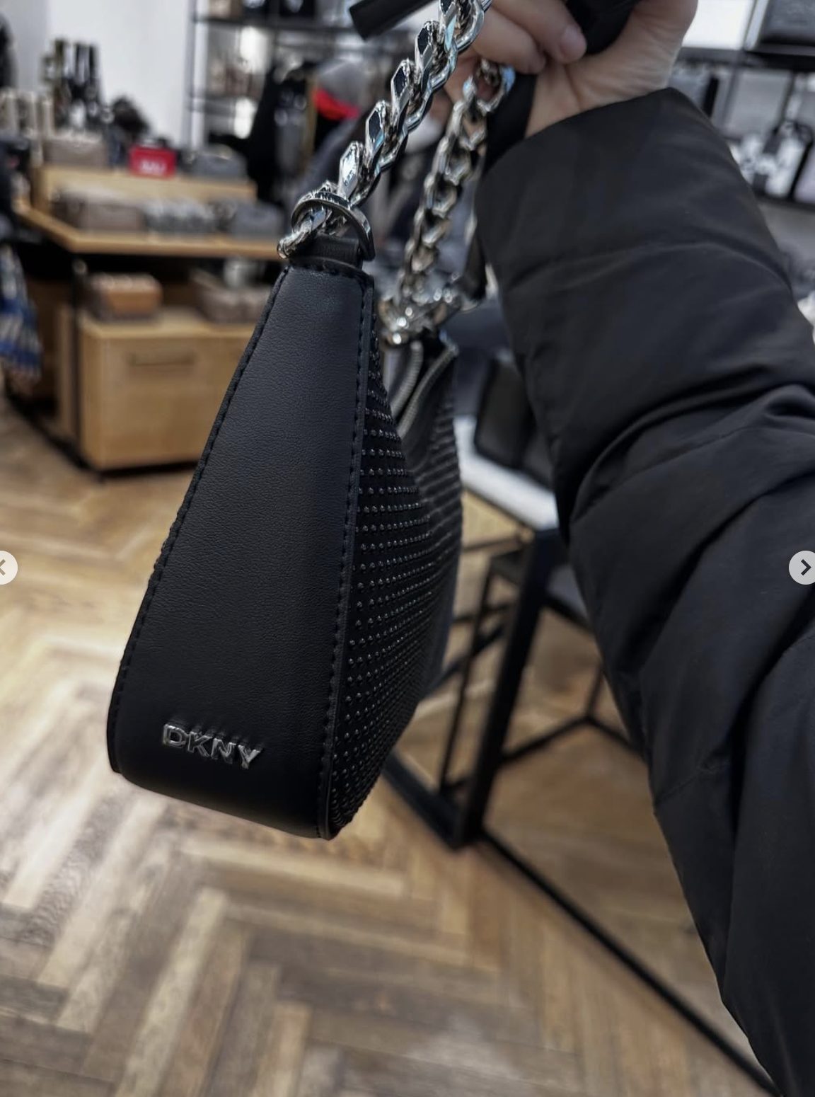 DKNY, small crossbody bag, studded black