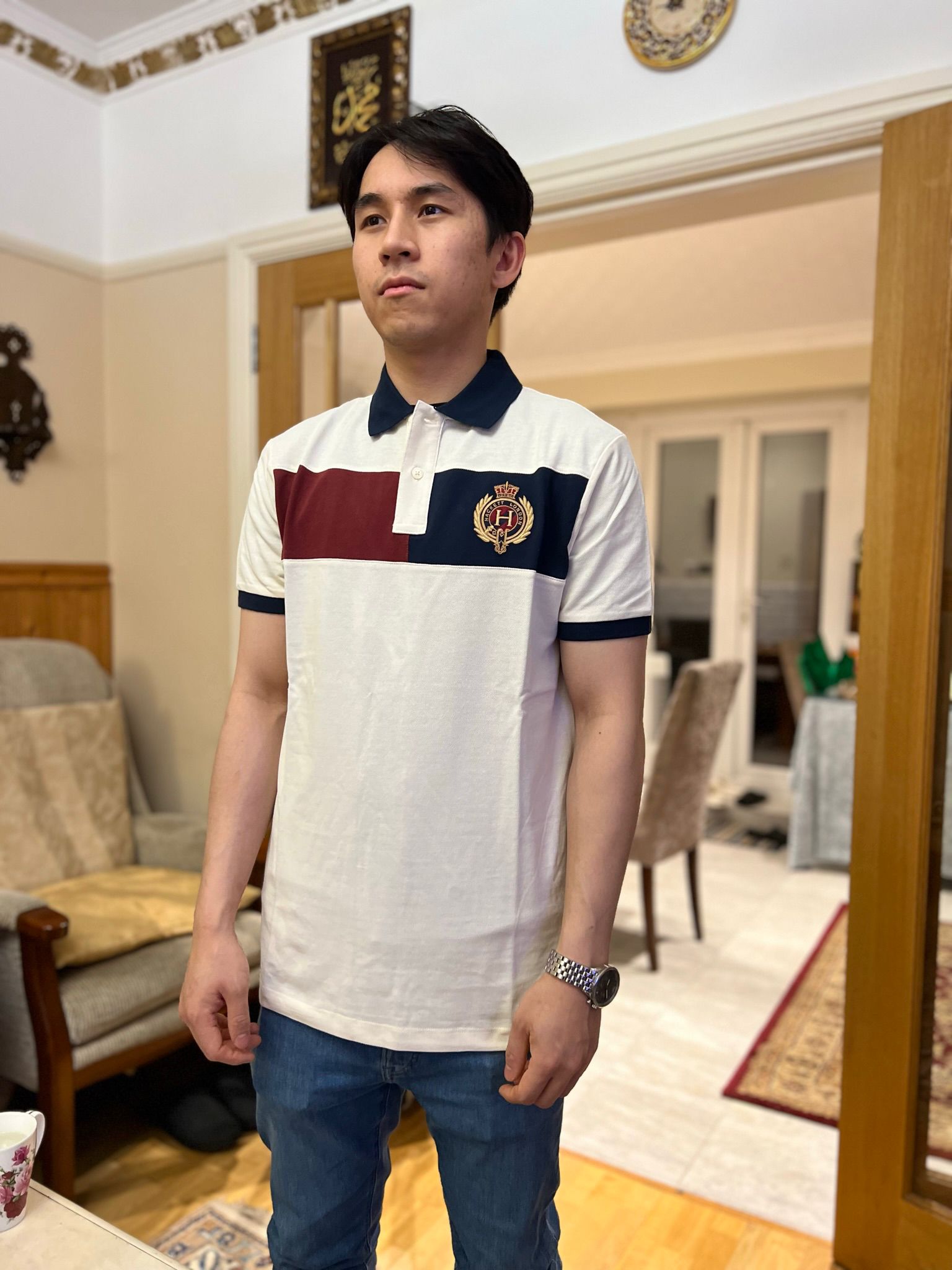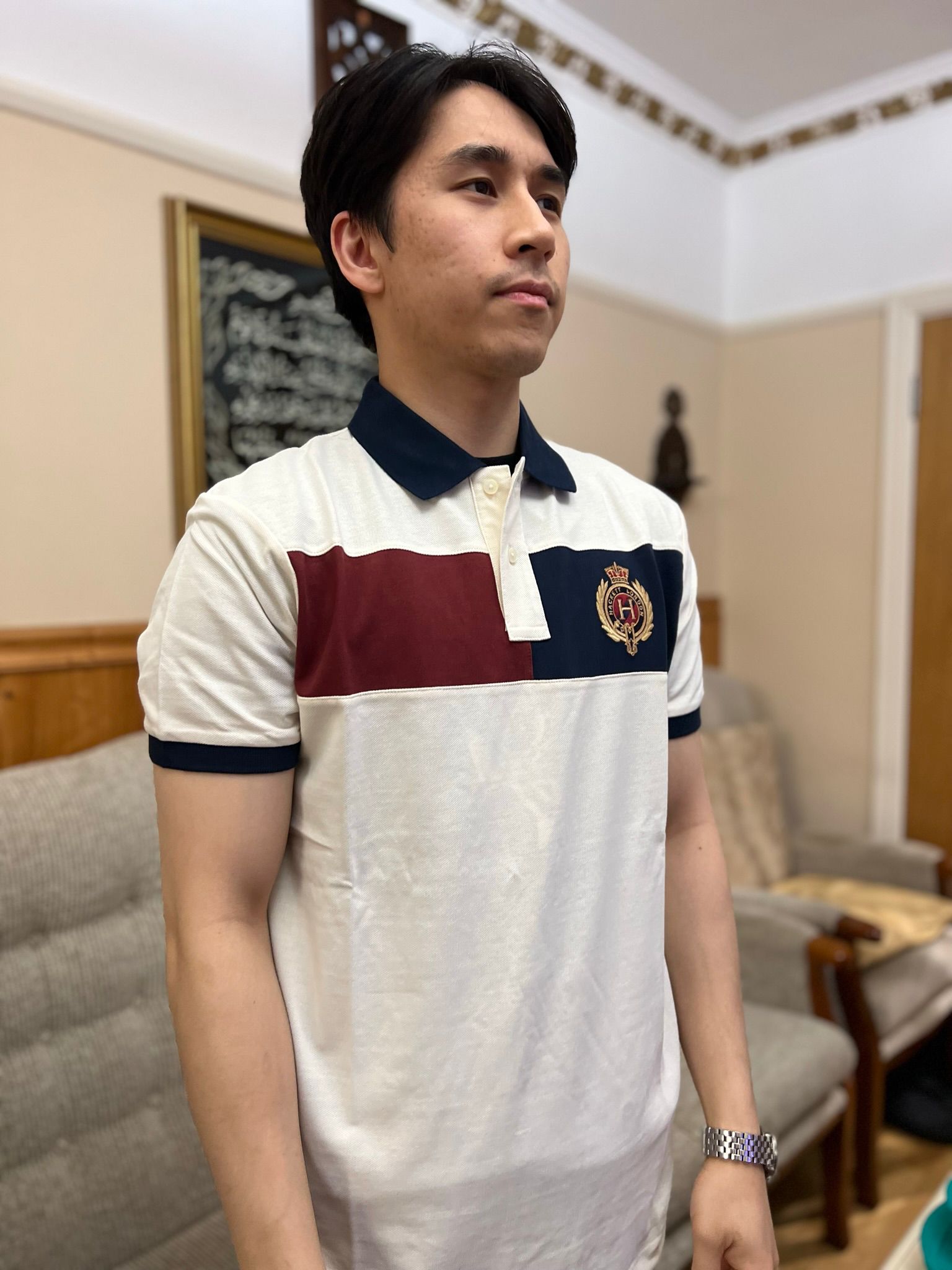 HACKETT, for men, collared t shirt, mesh cotton, classic fit, embroidered cream