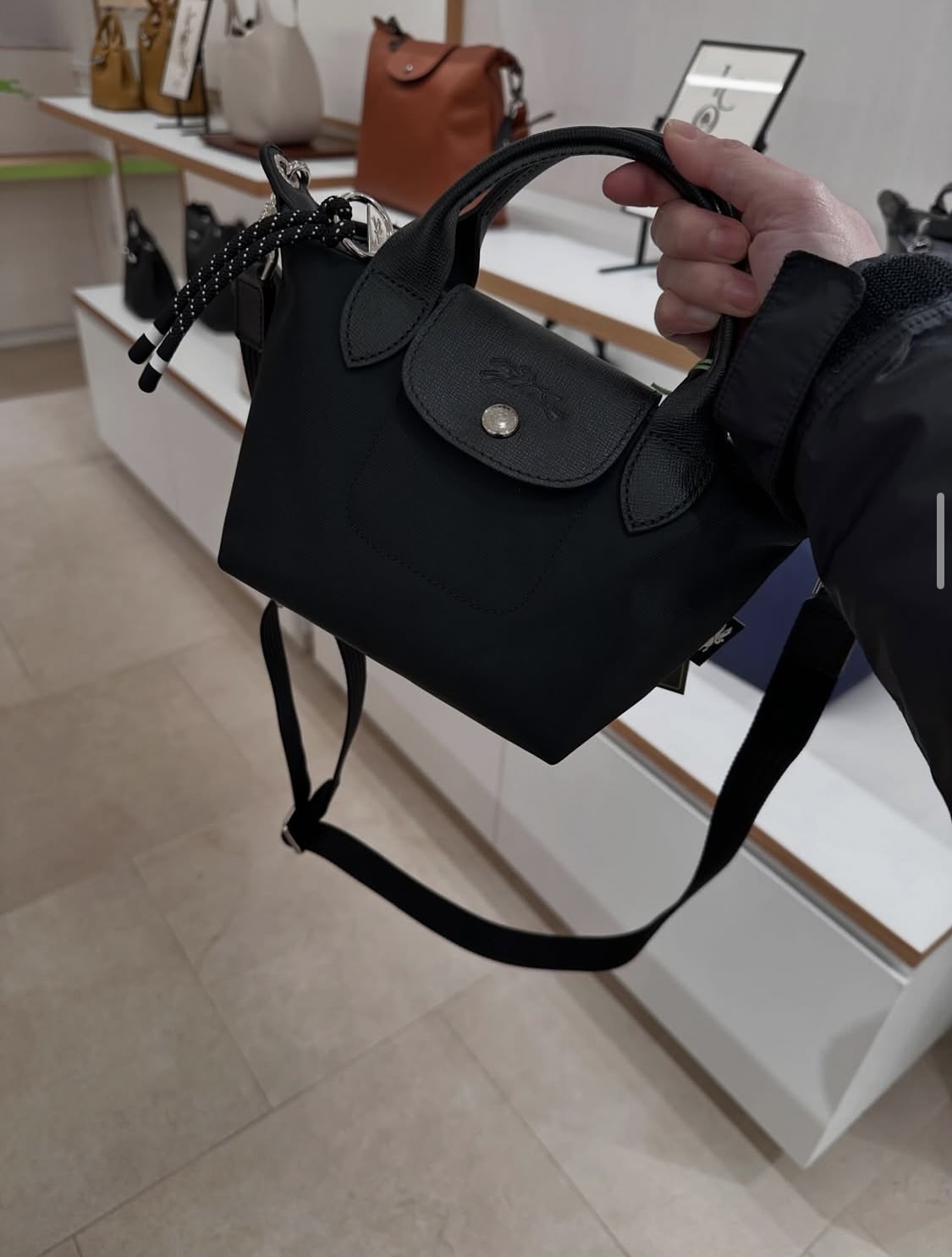 LONGCHAMP, energy, xs top handle bag, with adjustable long strap, black