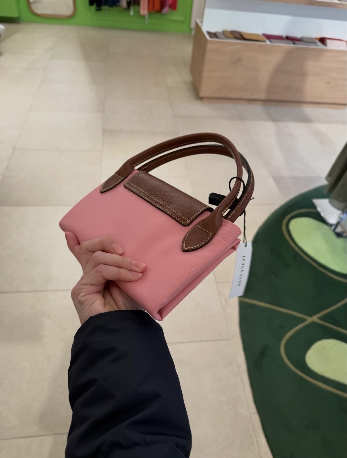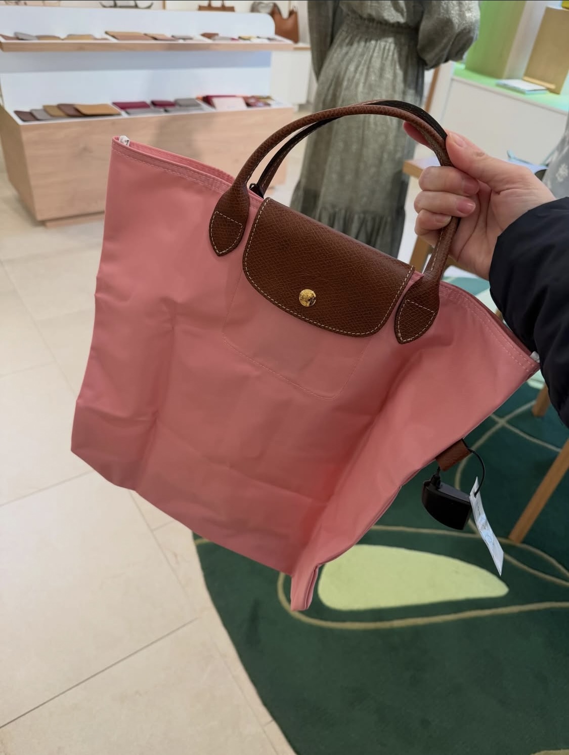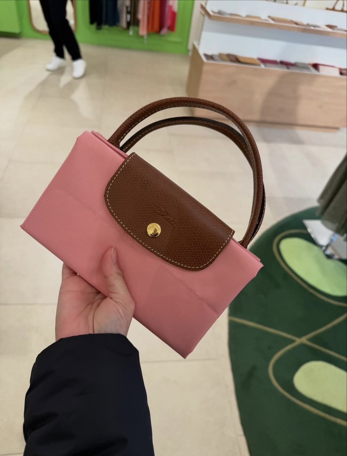 LONGCHAMP, le pliage original, top handle open top tote bag, nylon soft pink