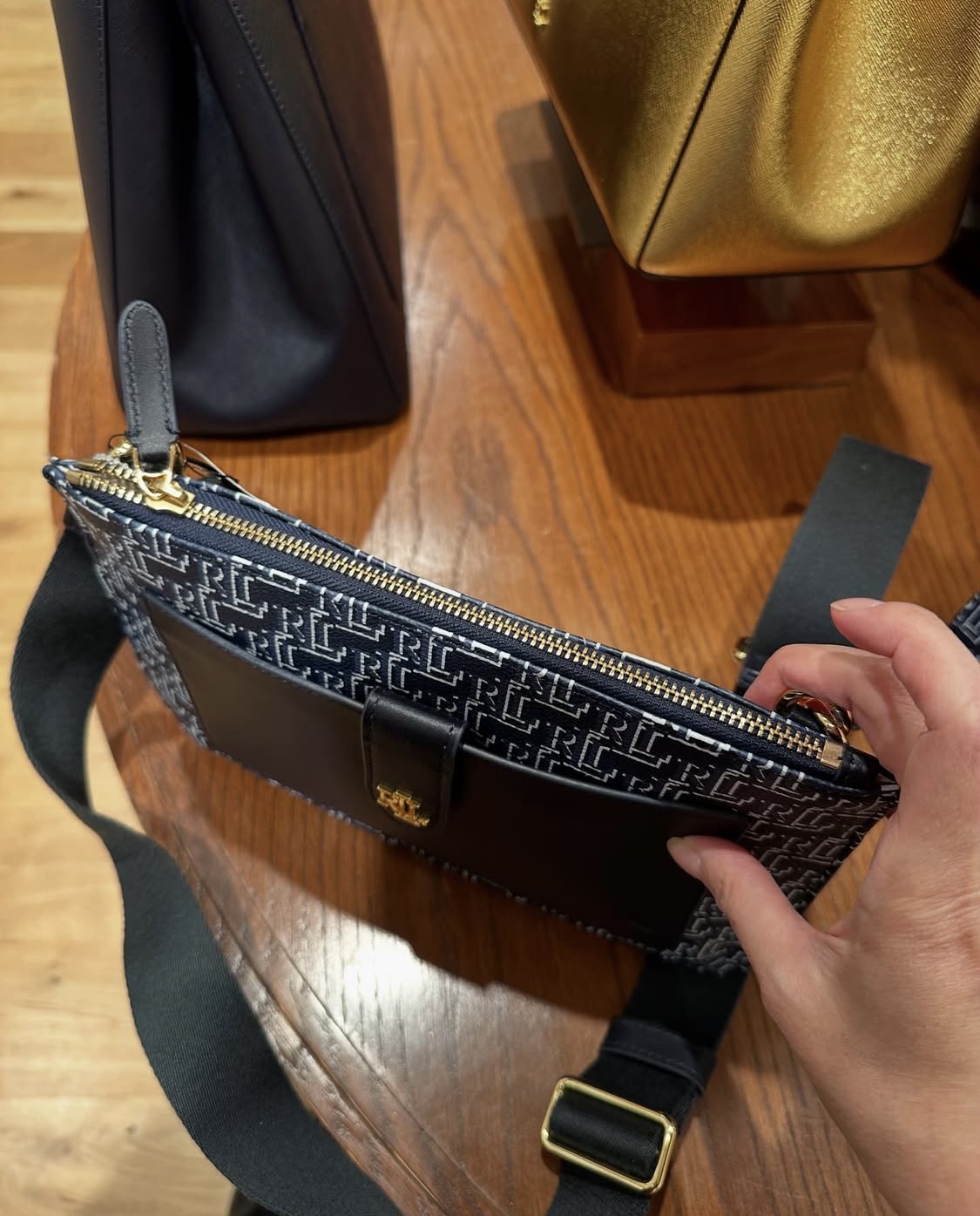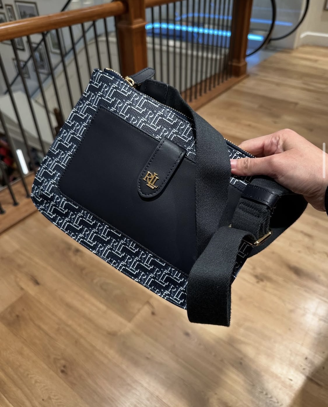 POLO RALPH LAUREN, for ladies, crossbody bag, printed logo, coated cotton blue