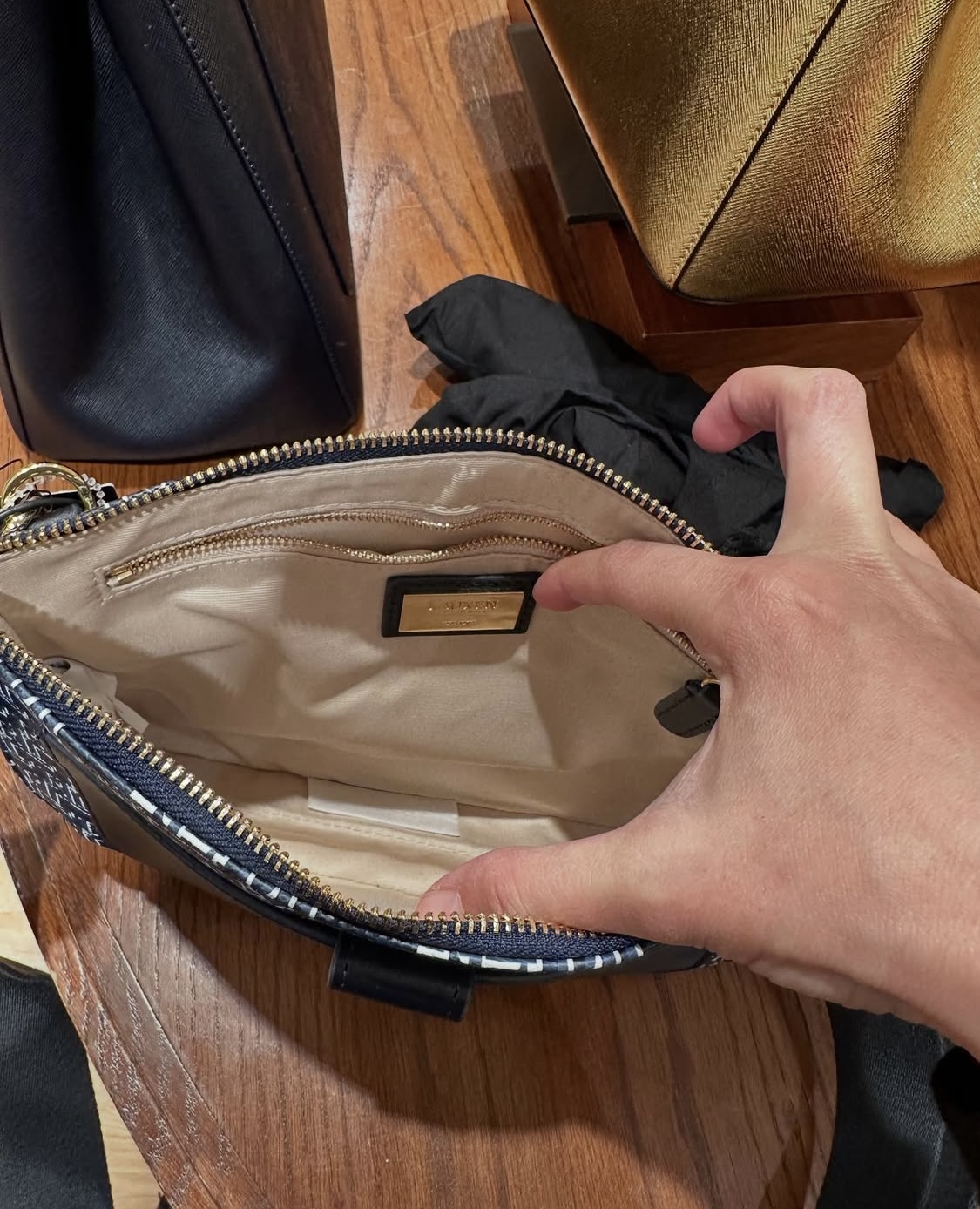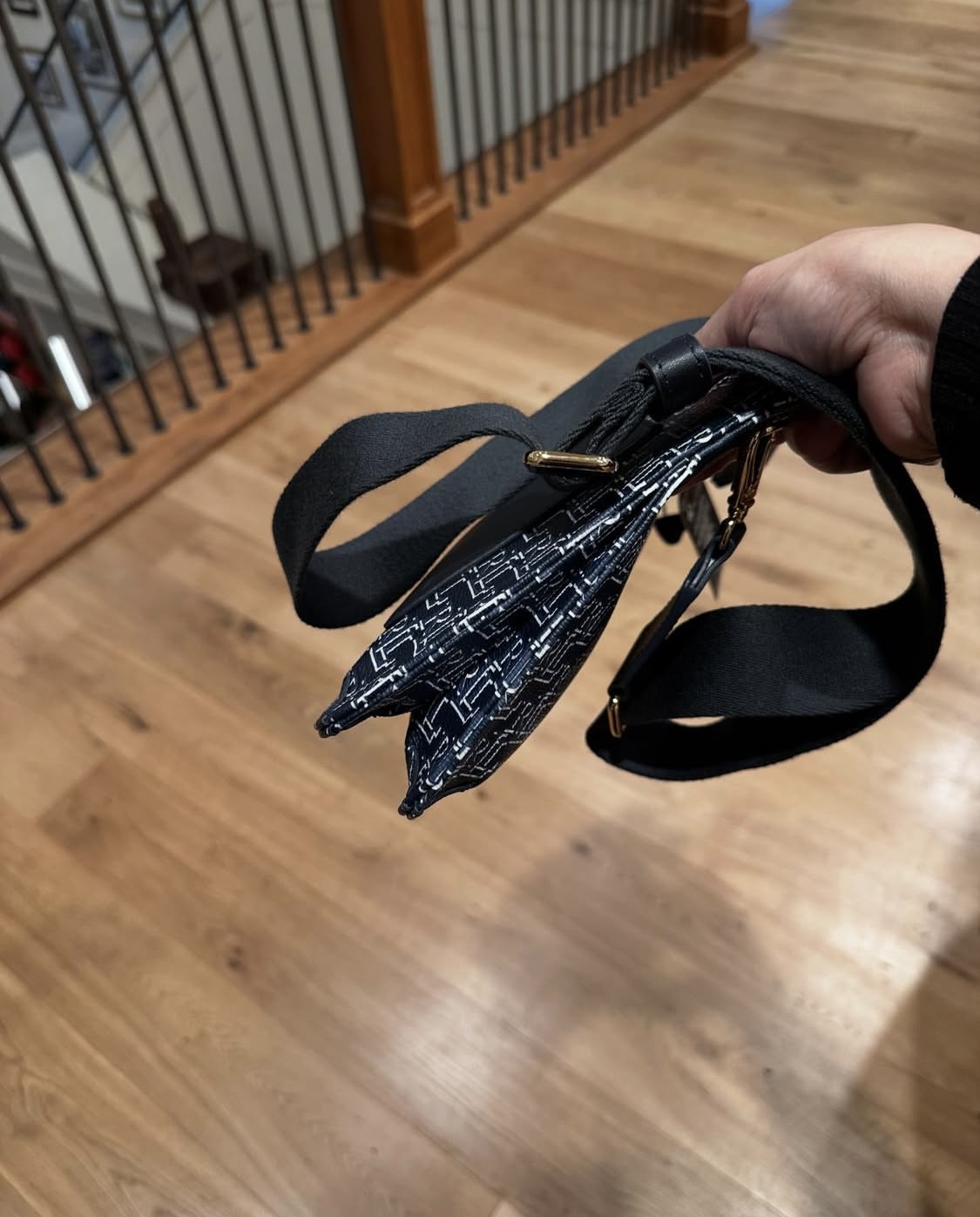 HARRODS, flap crossbody bag, chevron, glossy black