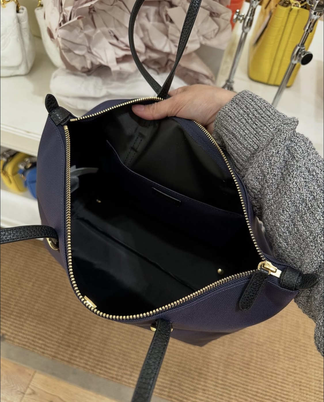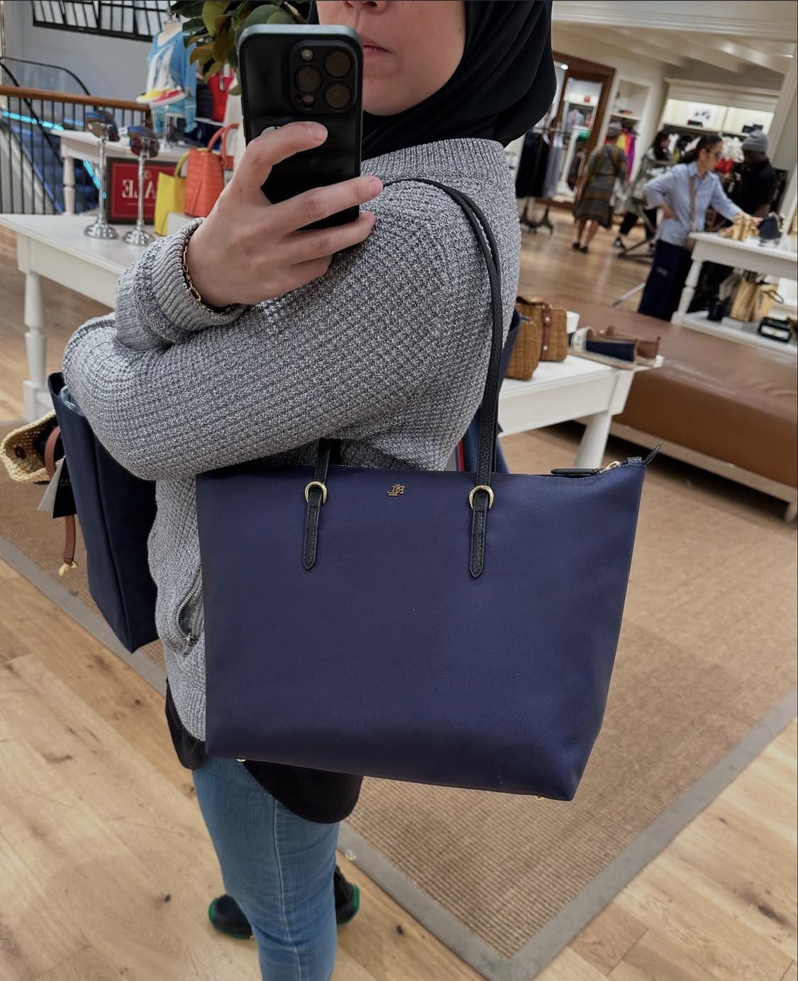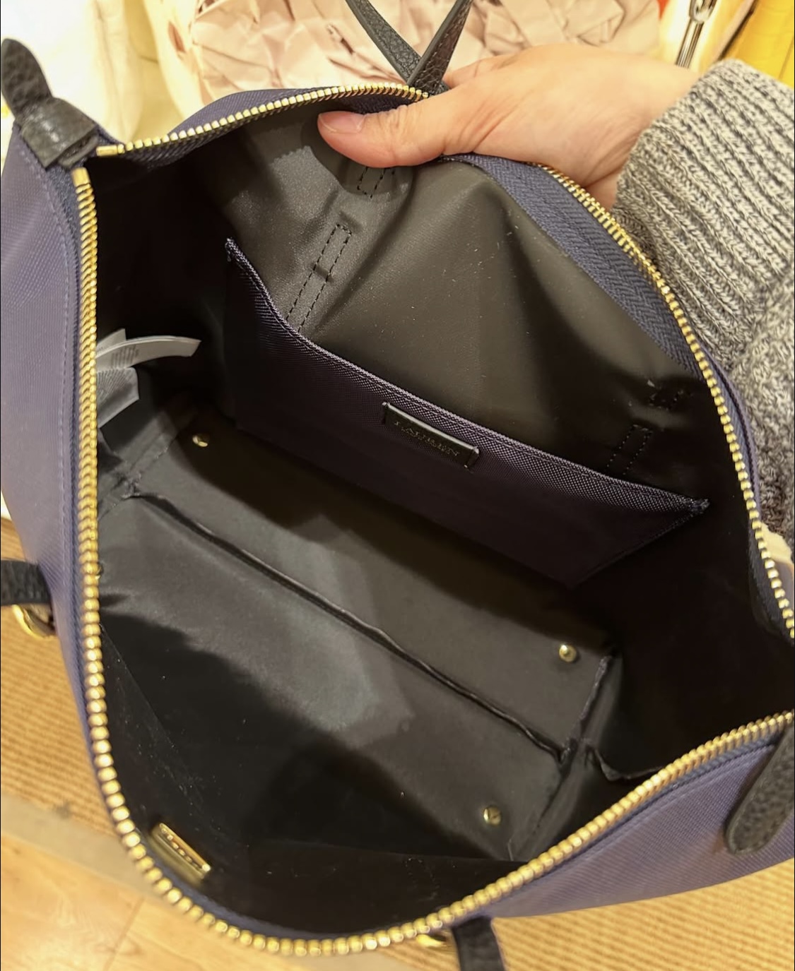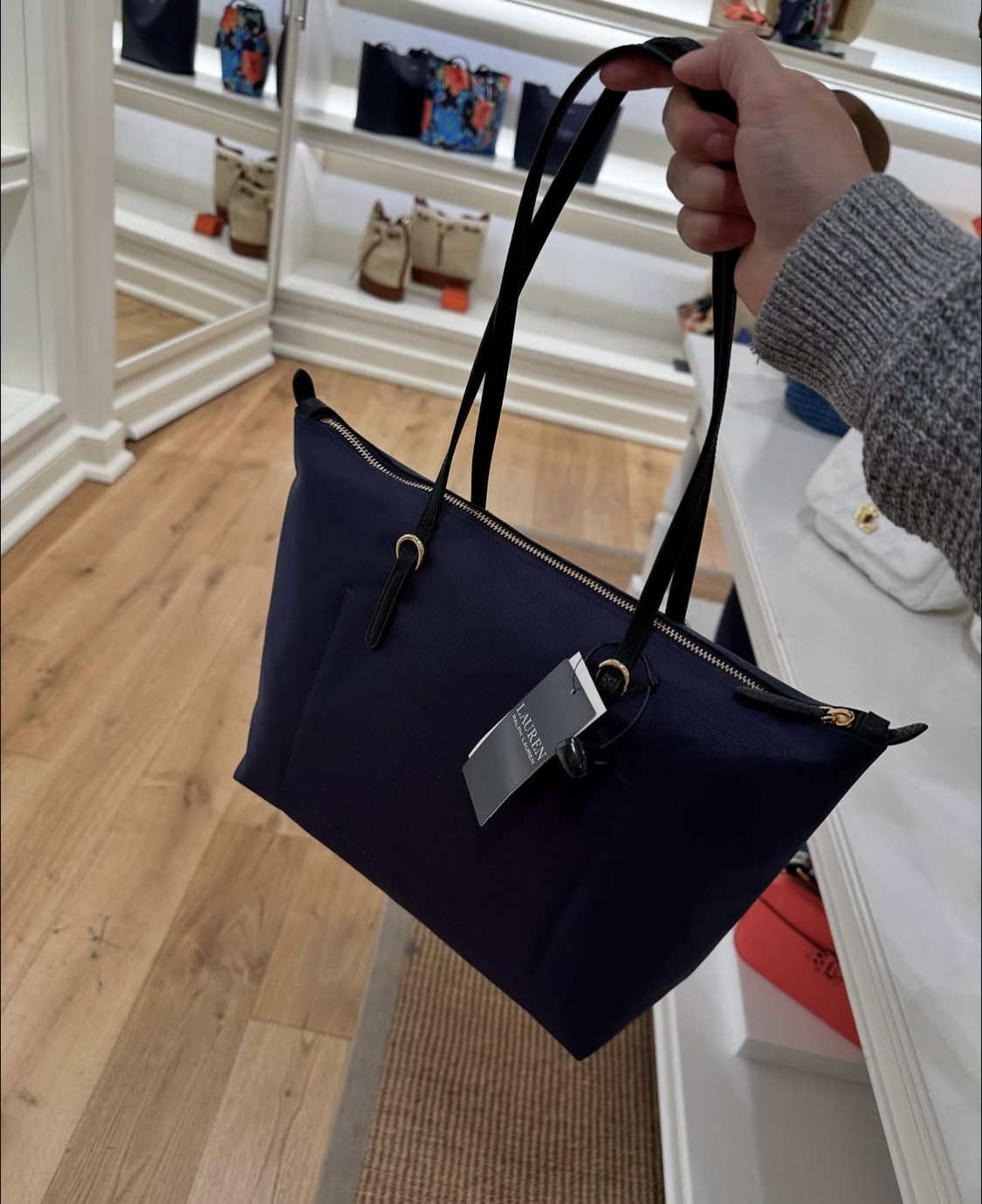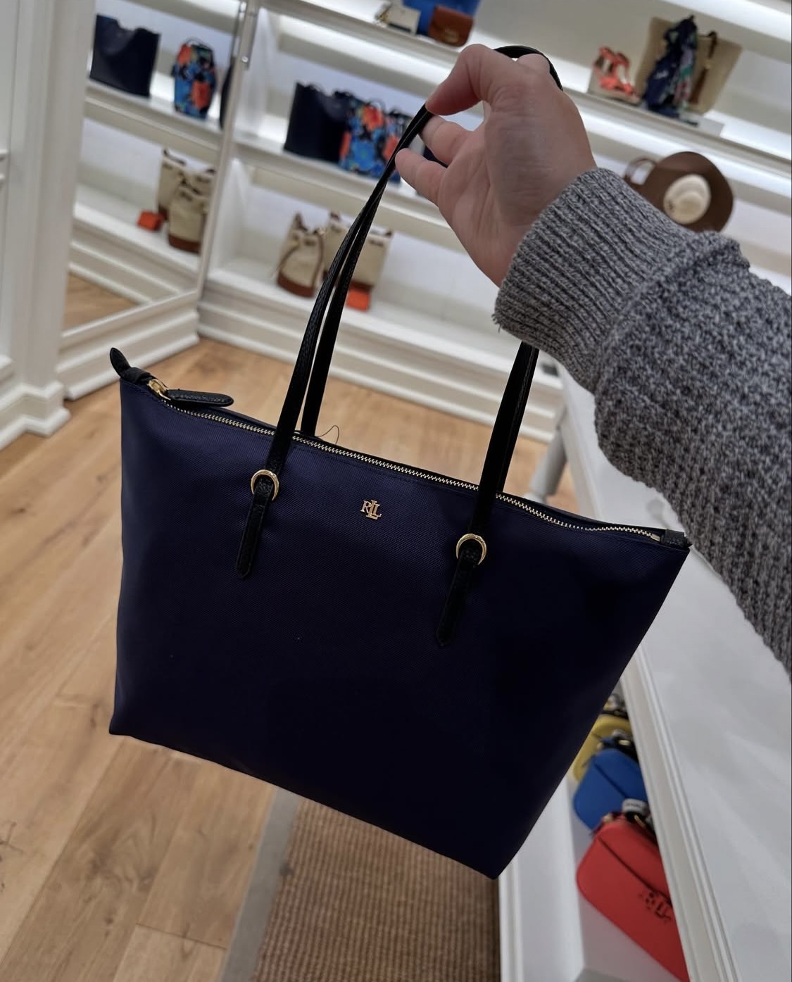 POLO RALPH LAUREN, for ladies, small zip top tote bag, canvas navy