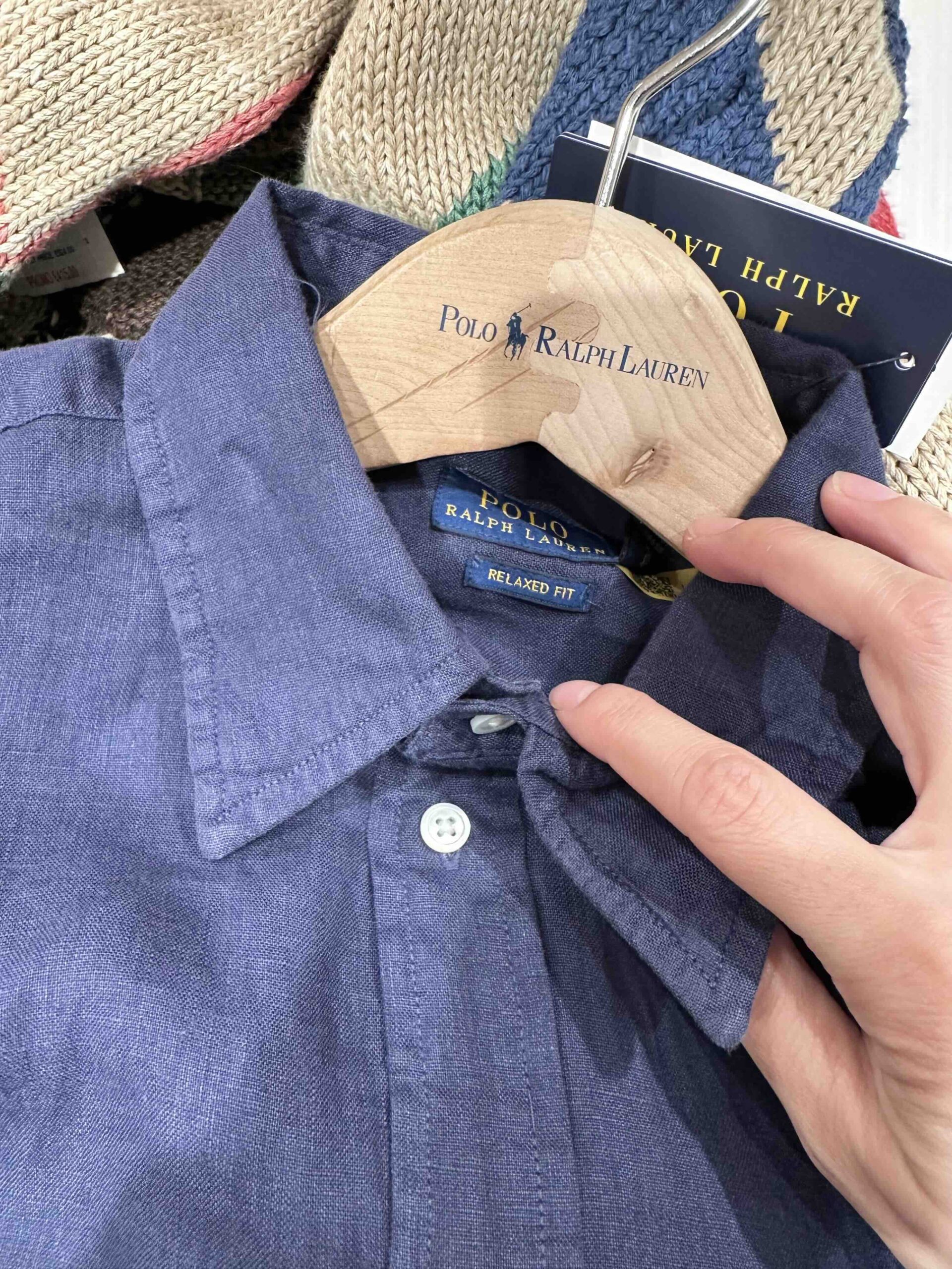 POLO RALPH LAUREN, for men, long sleeves shirt, relaxed fit, linen navy