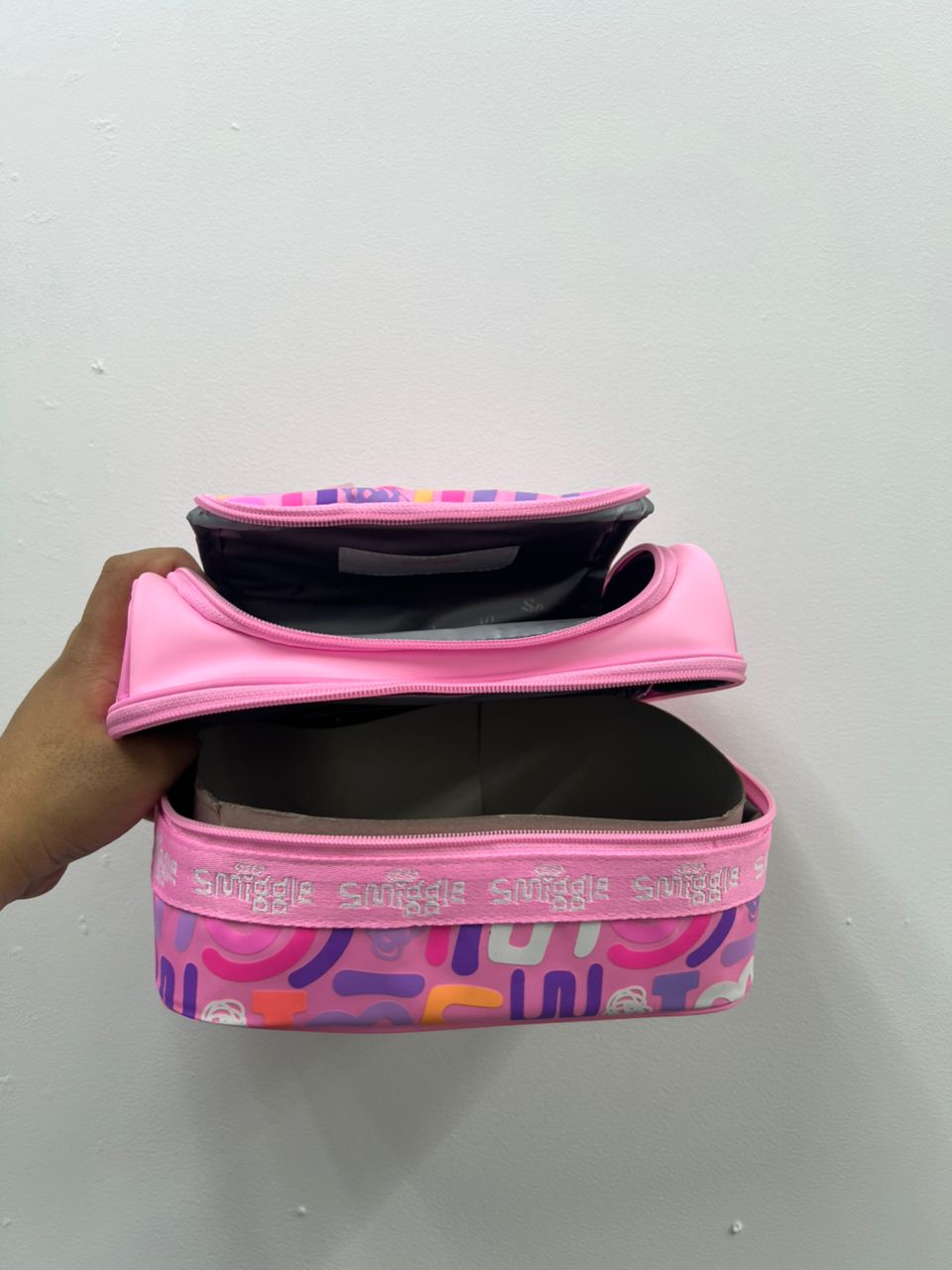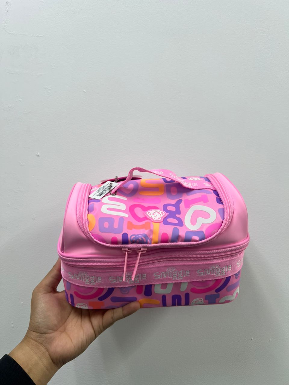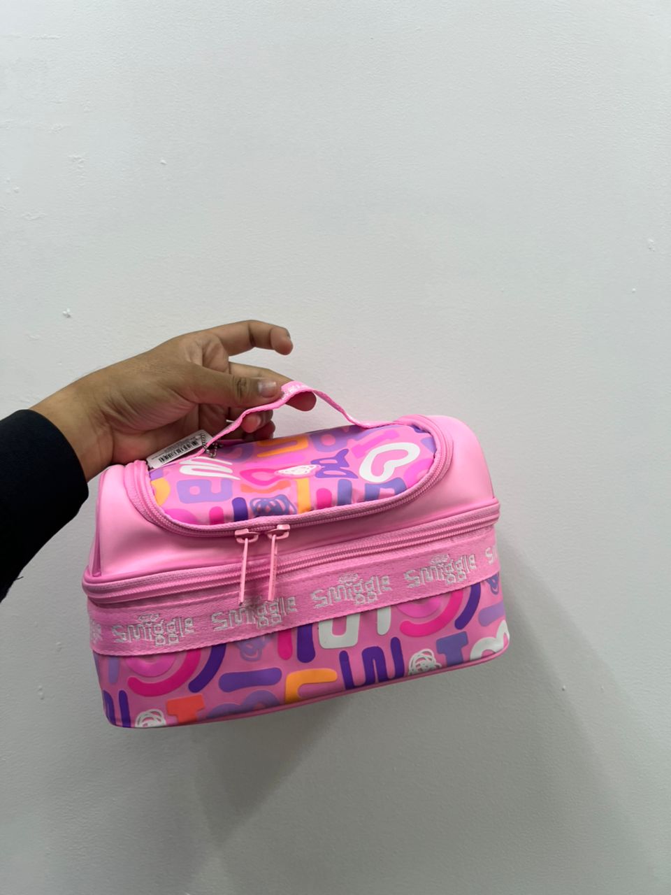 SMIGGLE, Double Decker Lunch Box, all over logo print, pink