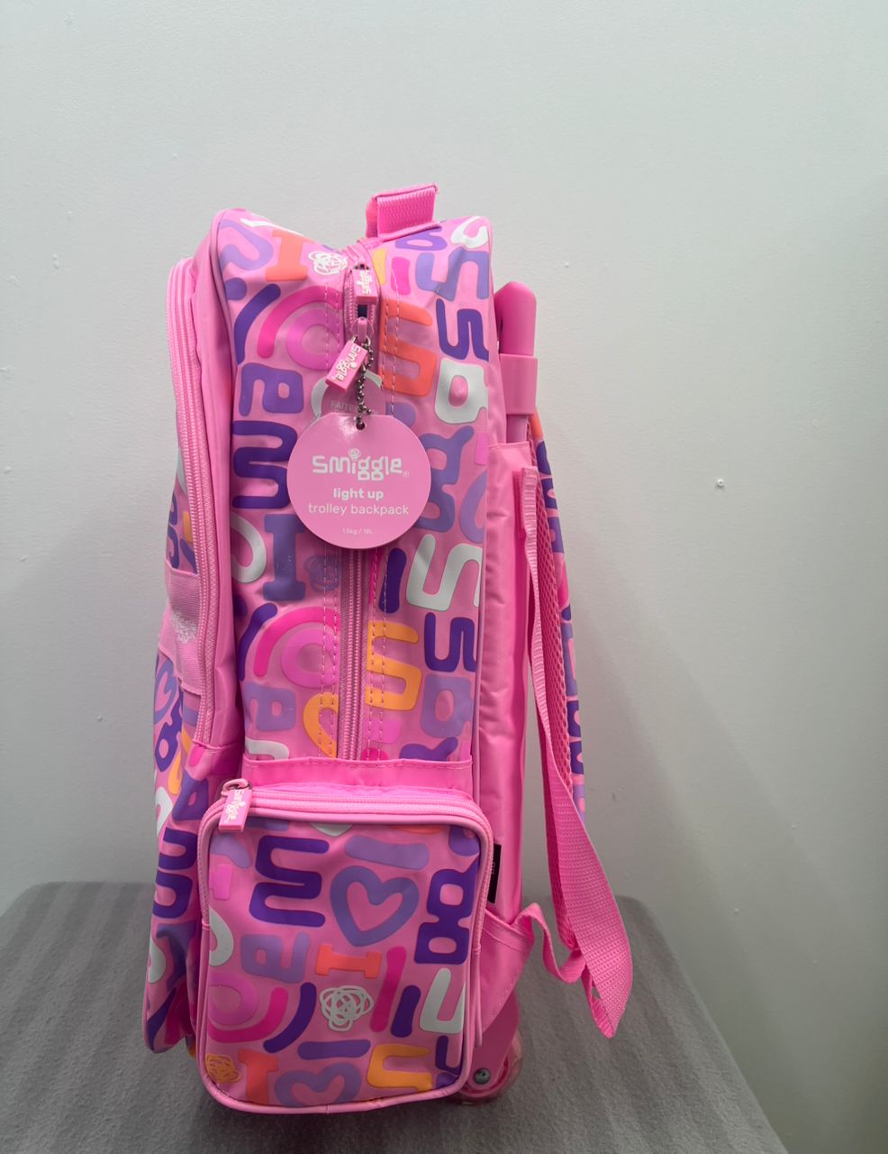 SMIGGLE, for kids, Large Trolley Bag, all over logo print, pink