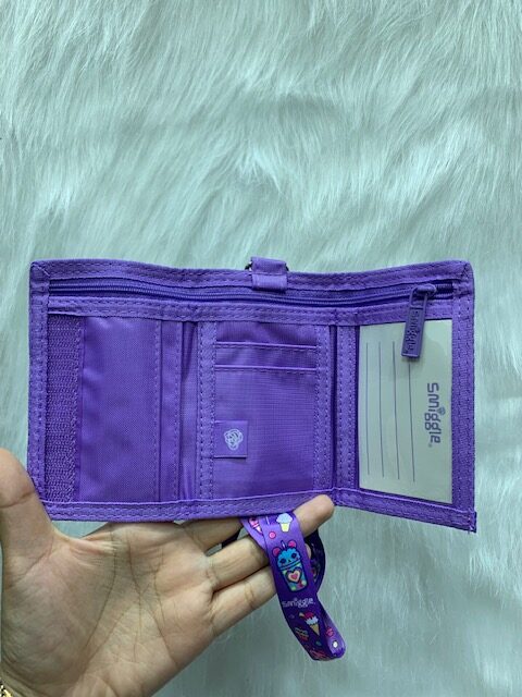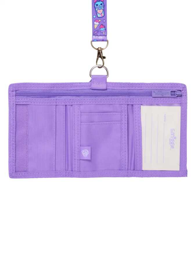 SMIGGLE Wonder World. trifold wallet with lanyard, Lilac.