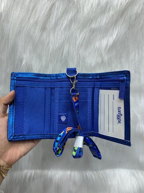 SMIGGLE Wonder World. trifold wallet with lanyard, Royal Blue.